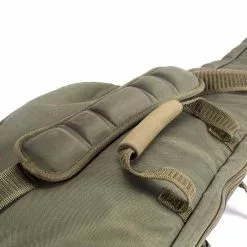 Im Gegensatz zu einem Single Jacket lassen sich mit der Double Rod Sling zwei montierte Ruten, komfortabel auf einmal transportieren. Diese Tasche verfügt im Innenraum über eine durchgehende, gepolsterte Unterteilung, die mittels Klettverschlüssen dafür sorgt dass die Ruten sicher an ihrem Platz bleiben.