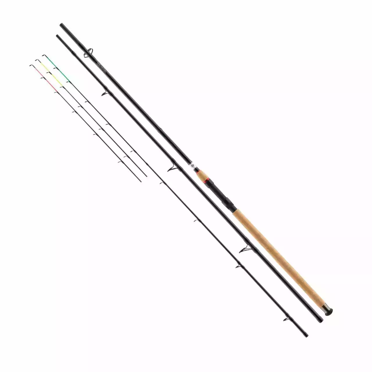 Ebenso besitzt diese Rute eine Fiberglas-, sowie 2 Kohlefaser-Spitzen. Somit bist du für jedes Gewässer gerüstet! Denn je nachdem, wie sich die Bedingungen an deinem Gewässer verändern, kannst du spontan zwischen den verschiedenen Spitzen die Richtige auswählen.