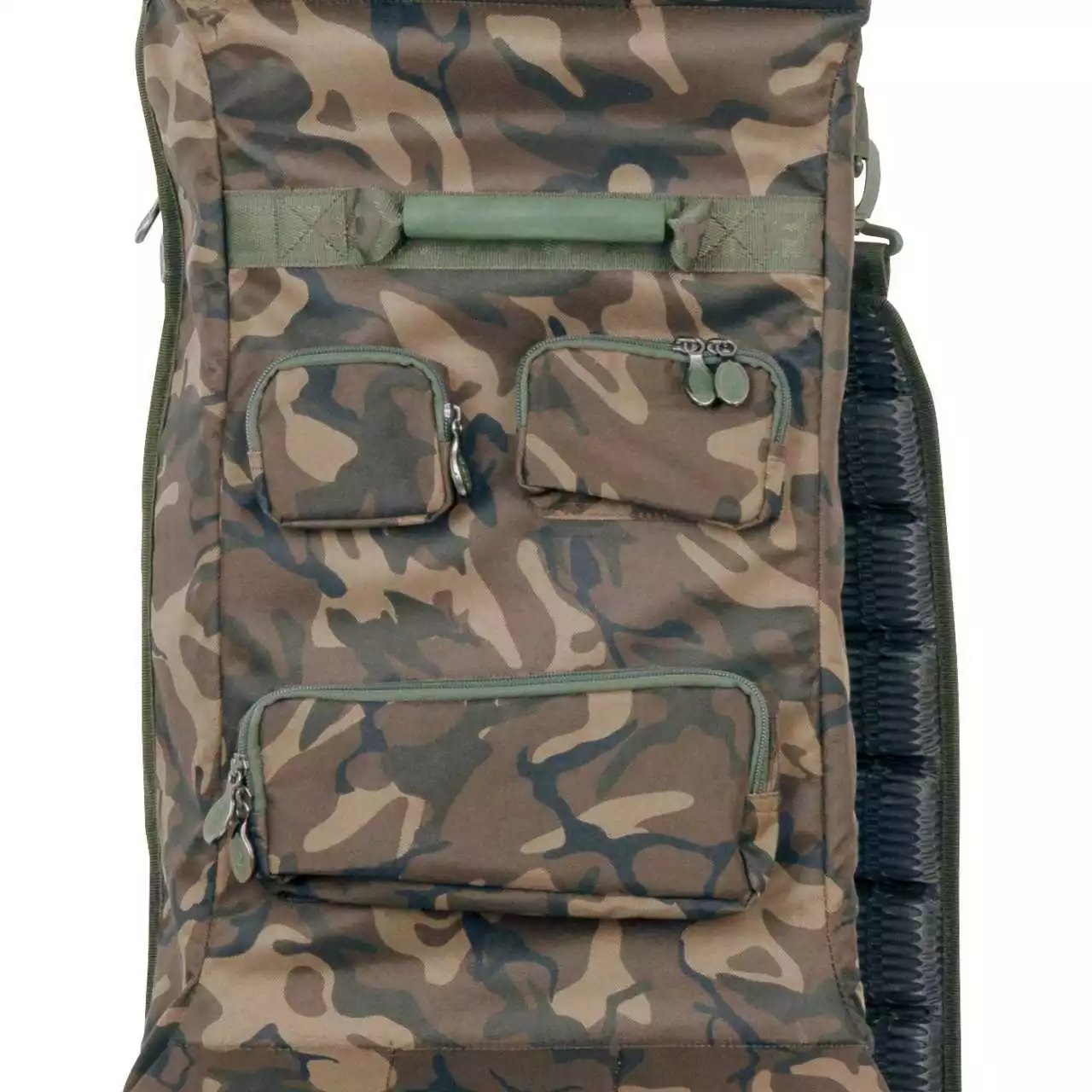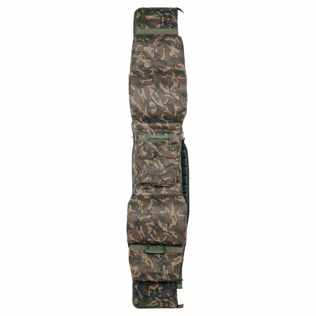 Das Camolite 13 ft 3+3 Rod Case kann bis zu 6 fertig montierte Ruten aufnehmen und enthält gepolsterte Trennelemente. Transportieren kannst du das Rod Case ganz nach Belieben entweder über die versteiften EVA-Tragehandgriffe oder über den abnehmbaren gepolsterten Schultergurt. Weiters bietet die dieser Rod Case eine große Außenaufsatztasche für deinen Kescher.