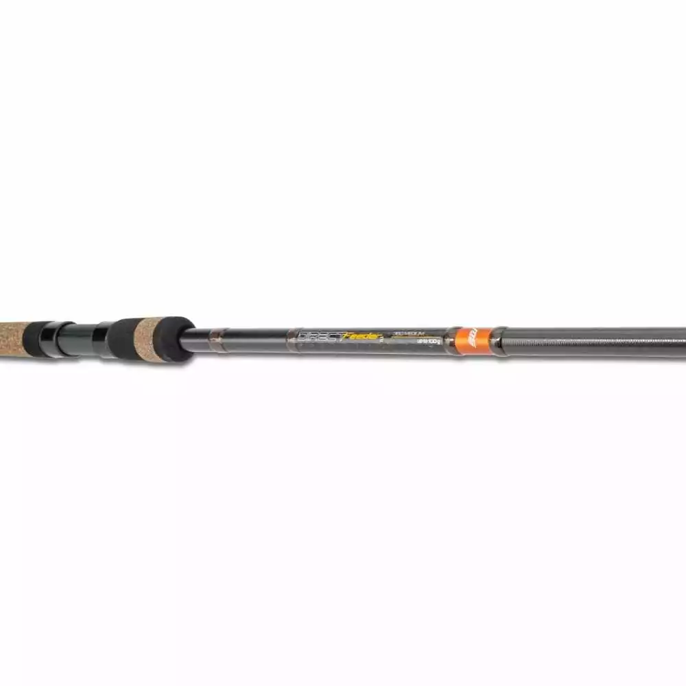 Hier präsentieren wir die komplett überarbeitete Direct Feeder² Serie. Hier wurde nicht nur die Kosmetik verändert, sondern hier ist alles neu. Angefangen beim Blank aus hochverdichtetem Kohlefasermaterial, über die Beringung mit modernen K-Typ Ringen und natürlich schlussendlich auch das Erscheinungsbild der Rutenserie ist neu.