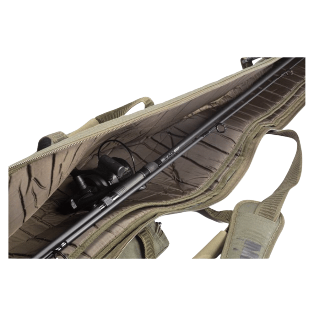 Beim grünen 13ft Double Rod Skin handelt es sich um ein äußerst schützendes Rutenfutteral im neuen Design, mit einer großzügigen Aussparung, für den Transport von zwei 13ft Ruten mit bis zu 50mm Startring. Solltest du jedoch mehr als zwei Ruten mitnehmen wollen, besteht die Möglichkeit, das Double Rod Skin mit weiteren Single Rod Skins (nicht im Lieferumfang) zu kombinieren.