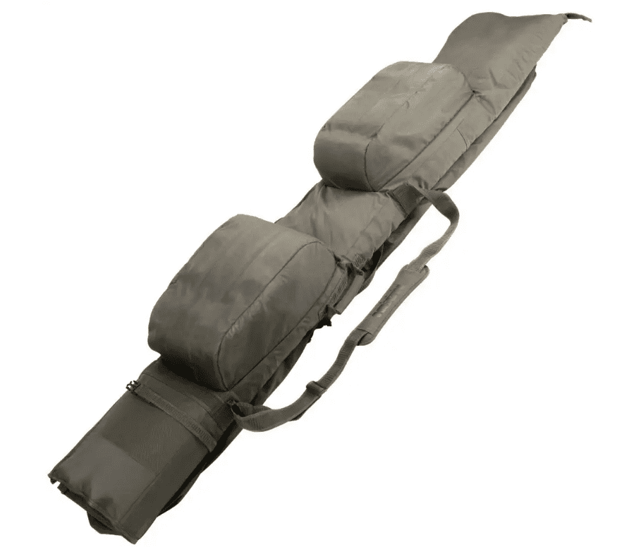 Beim grünen 12 ft 3 Rod Apache handelt es sich um ein äußerst schützendes Rutenfutteral für den Transport von drei unterschiedlichen Ruten inklusive Rollen.