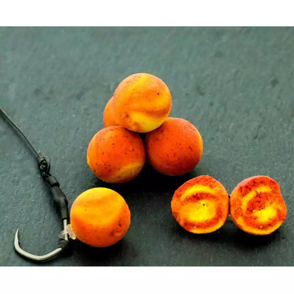Die Wafter haben einen Clou: Zwei Farben in einem Pop Ups! Sie fließen ineinander wie bei einer Murmel – innen wie außen! Da kann kaum ein Karpfen widerstehen!