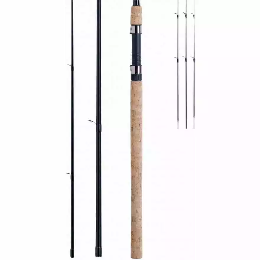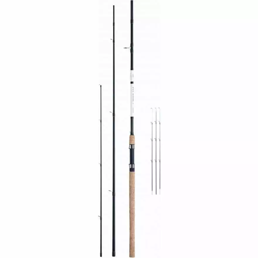 Eine gut ausbalancierte Feederrute, ideal geeignet zum Fischen mit schweren Futterkörben in Fließgewässern. Die Beringung ist so groß gewählt, dass auch problemlos mit Schlagschnur gefischt werden kann. Auch bei leichteren Futterkörben laden sich die Ruten sehr gut auf, um mit wenig Kraftaufwand große Wurfweiten erzielen zu können.